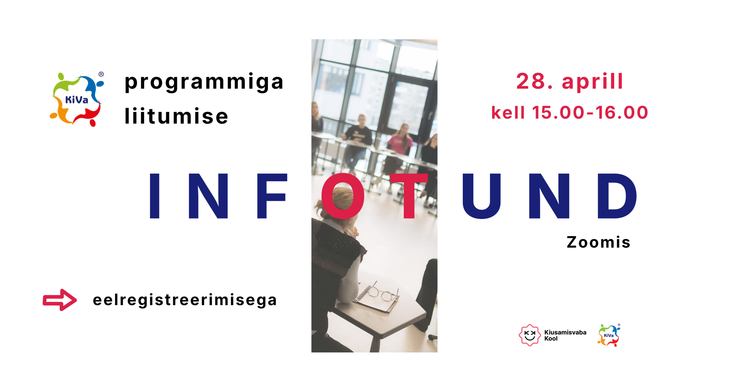 Esimene kohtumine toimub 28. aprillil kell 15.00–16.00 Zoomis. Tegemist on KiVa programmiga liitumise infotunniga, kus tutvustame, mis on KiVa, milline näeb välja liitumisteekond ning milliste sammudega tuleb arvestada enne programmi rakendamise algust.